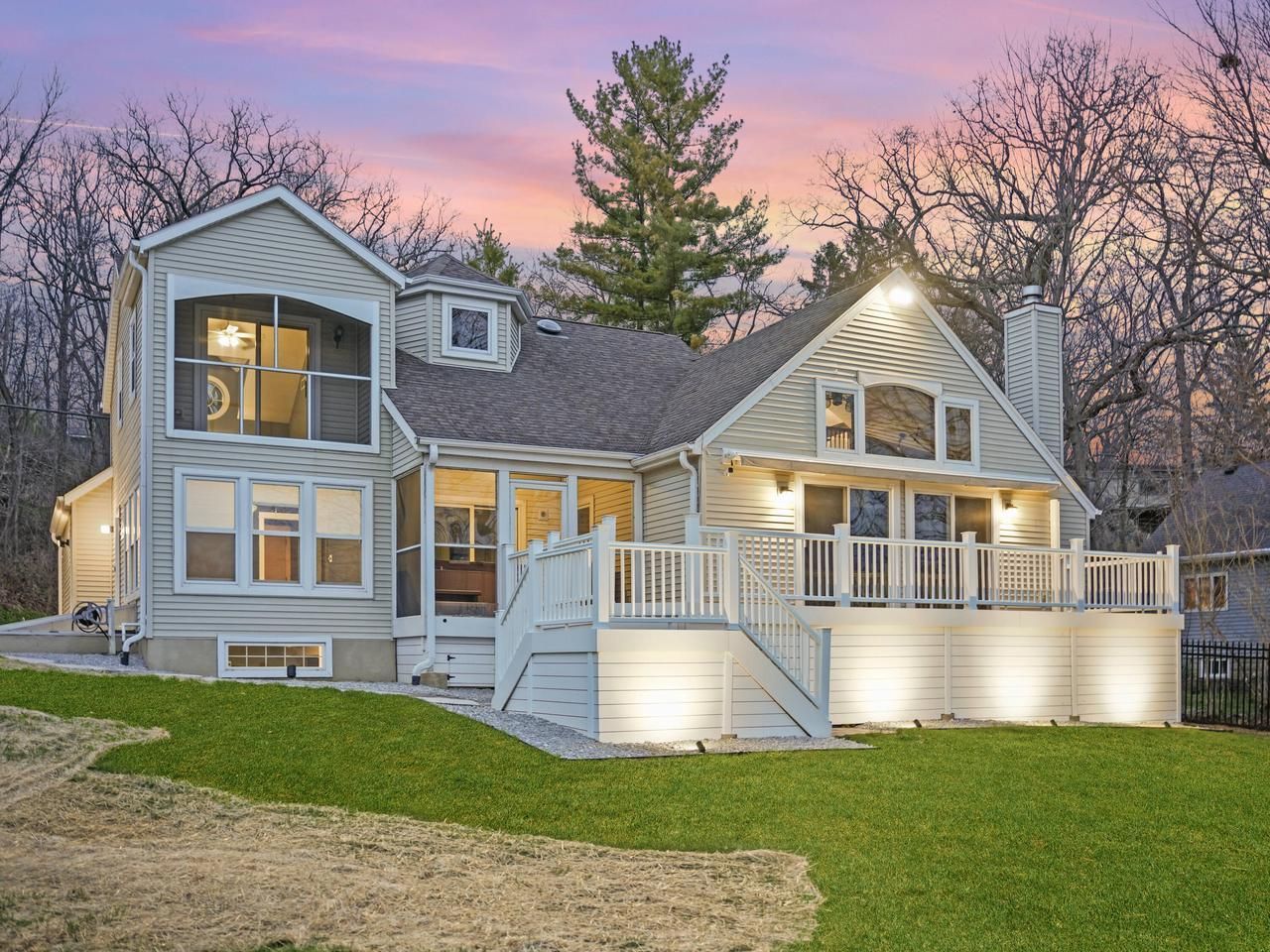 Experience lake living at its best on Tichigan Lake with 90' of frontage and panoramic water views. This 4BR, 4BA home features a bright, open layout with a beautifully updated kitchen and inviting living spaces anchored by a gas fireplace. The finished walkout lower level offers additional space to relax or entertain. Upstairs, the primary suite includes vaulted ceilings and a private balcony overlooking the water. Outdoor amenities shine with a composite deck, retractable awning, screened upstairs porch, and covered hot tub. Year-round pier and boat lift included--enjoy endless recreation on over 1,100 acres of waterways and Rivermoor golf course is connected to subdivision allowing for easy access with golf carts.