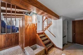 Mid-Century Masterpiece in Menomonee Falls! Experience the perfect marriage of timeless character and modern flexibility in this stunning mid-century inspired tri-level. From the moment you step inside, you'll be captivated by the architectural drama of soaring vaulted wood ceilings and the warmth of gleaming hardwood floors. The Heart of the Home has Architectural Charm: A light-filled living room anchored by a beautiful gas brick fireplace--perfect for cozy Wisconsin evenings. The kitchen and dinette flow seamlessly together, featuring patio doors that invite the outdoors in. Space for Everyone.